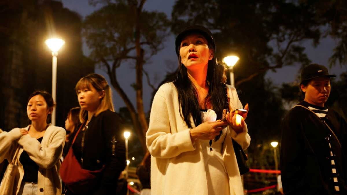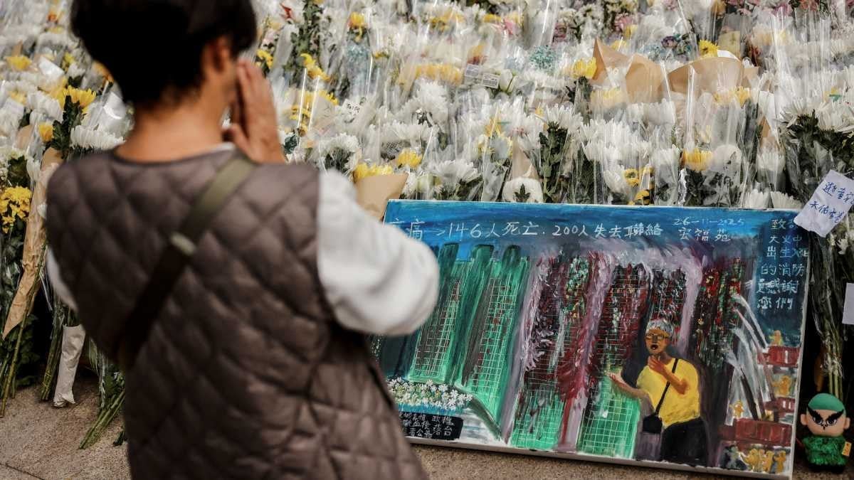 Leung ailesi yaklaşık kırk yıldır Wang Fuk Court’un E bloğunda yaşıyordu. Anne ile kızı Bonnie yıkılmış kulelerin yakınındaki anıta çiçek bırakıp sessizce bekledi.