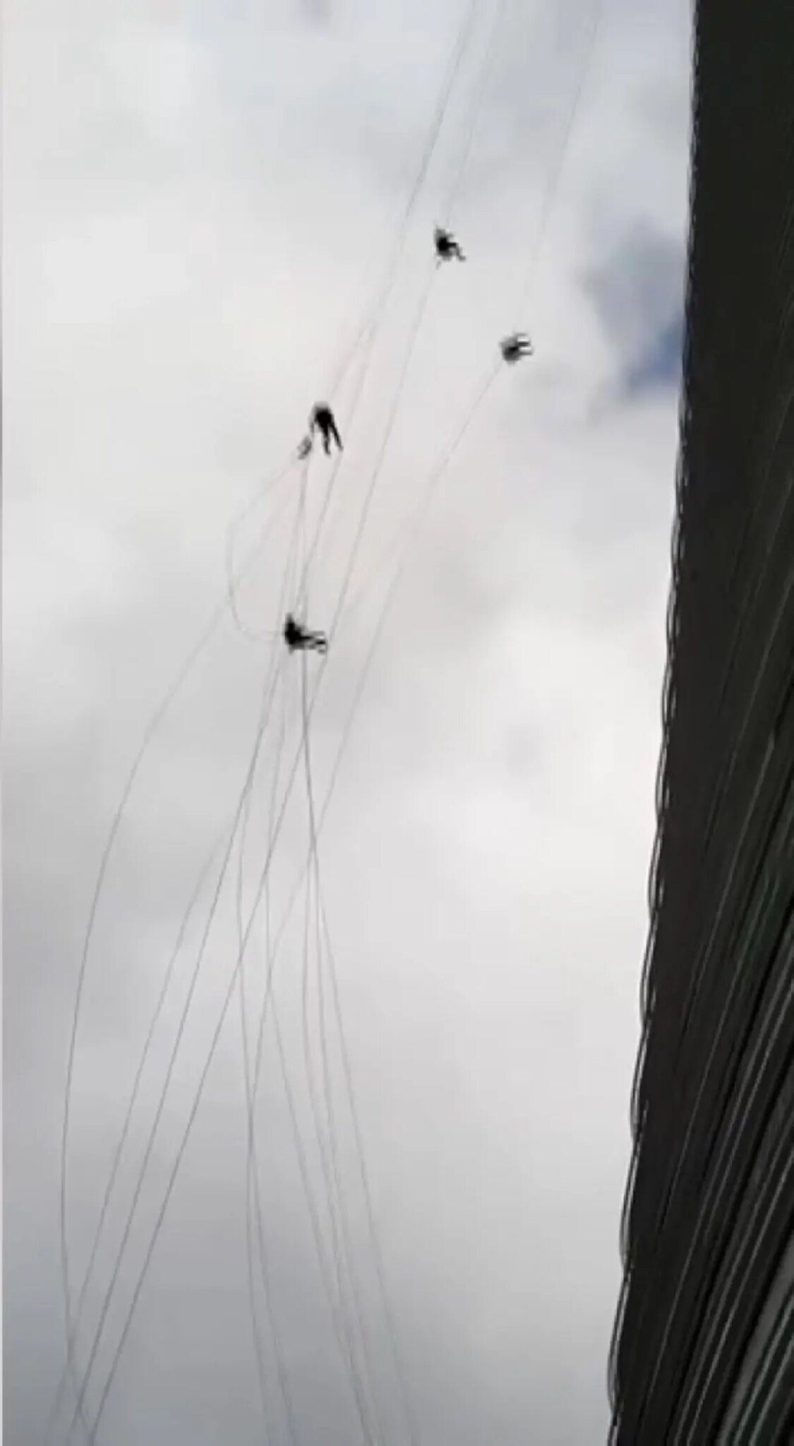 Olay, sabah saatlerinde Ümraniye’deki bir iş merkezinde meydana geldi. Gökdelenin camlarını temizlemek için halatlarla binaya tırmanan işçiler, fırtına nedeniyle uzun süre savruldu. İşçiler metrelerce yükseklikten yaklaşık 2 buçuk saat boyunca inmeye çalıştı. İşçilerin halatlara sıkıca tutunduğu anlar çevredekiler tarafından cep telefonu kamerasıyla kaydedildi.