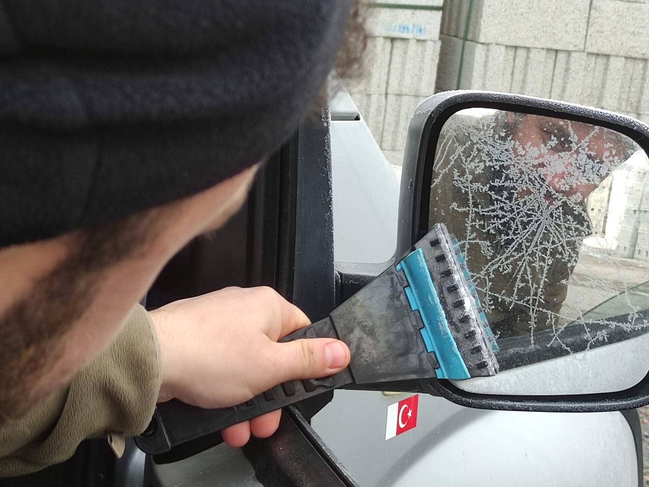 Termometrelerin eksi 17 dereceyi göstermesiyle birlikte özellikle sabah saatlerinde araç camlarının tamamen buz tuttuğu görüldü. Sürücüler, araçlarını çalıştırmakta güçlük çekerken, bazı vatandaşlar camları kazıyarak çözüm bulmaya çalıştı.